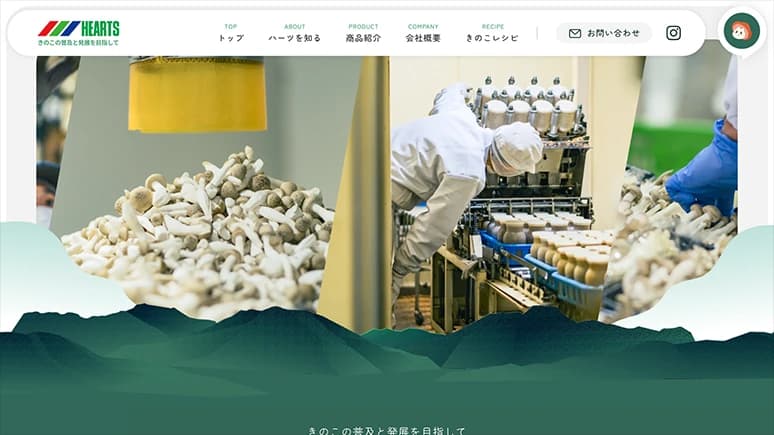 長野県信州にてきのこの栽培・販売をする、ハーツさまのコーポレートサイトリニューアルをさせていただきました。